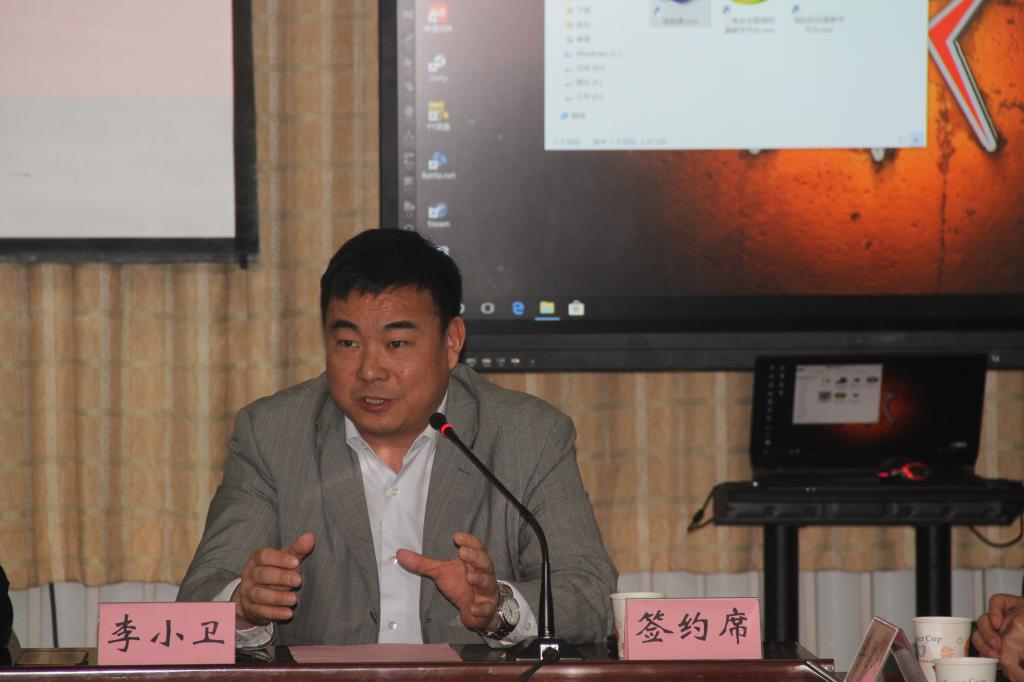 李小卫讲话。他说:“经过几个月的接洽和酝酿,教育仿真中心终于成立,我们愿意和学院紧密合作,在自治区农机局的指导之下,研发符合新疆实际的农机信息化虚拟仿真资源,为培养合格的农机人才,为新疆农机事业的发展,做出自己的贡献。”