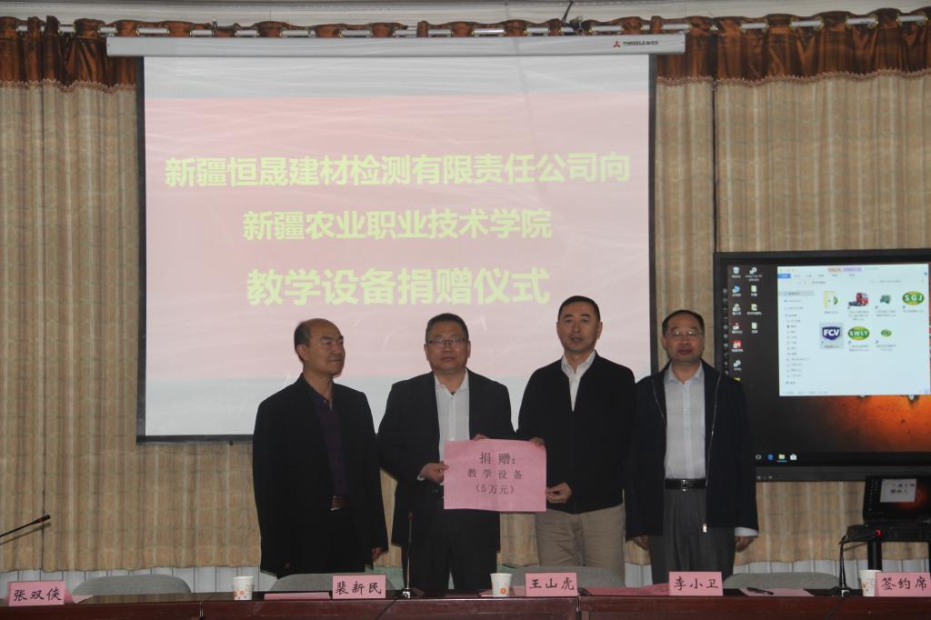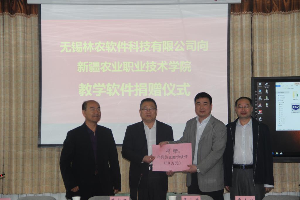 会议还举行了捐赠仪式。李小卫董事长向新疆农业职业技术学院捐赠价值10万元的农业机械信息化教学软件。岳利勇董事长向新疆农业职业技术学院捐赠价值5万元的教学设备。