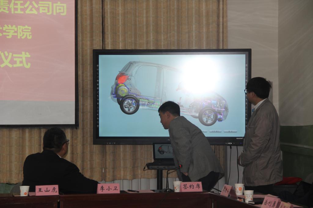 李小卫和王山虎分别代表企业和学院,签订了《新疆农机信息化仿真教育研究中心成立协议》。
